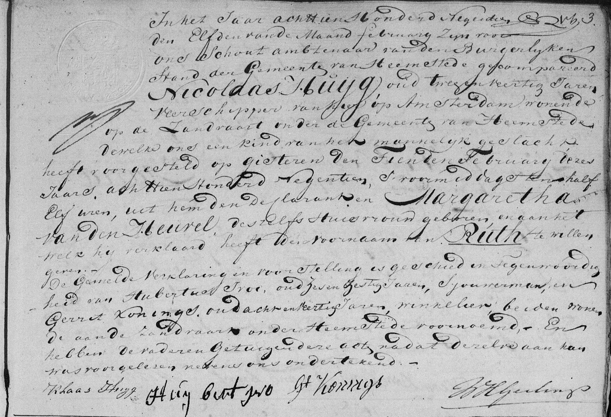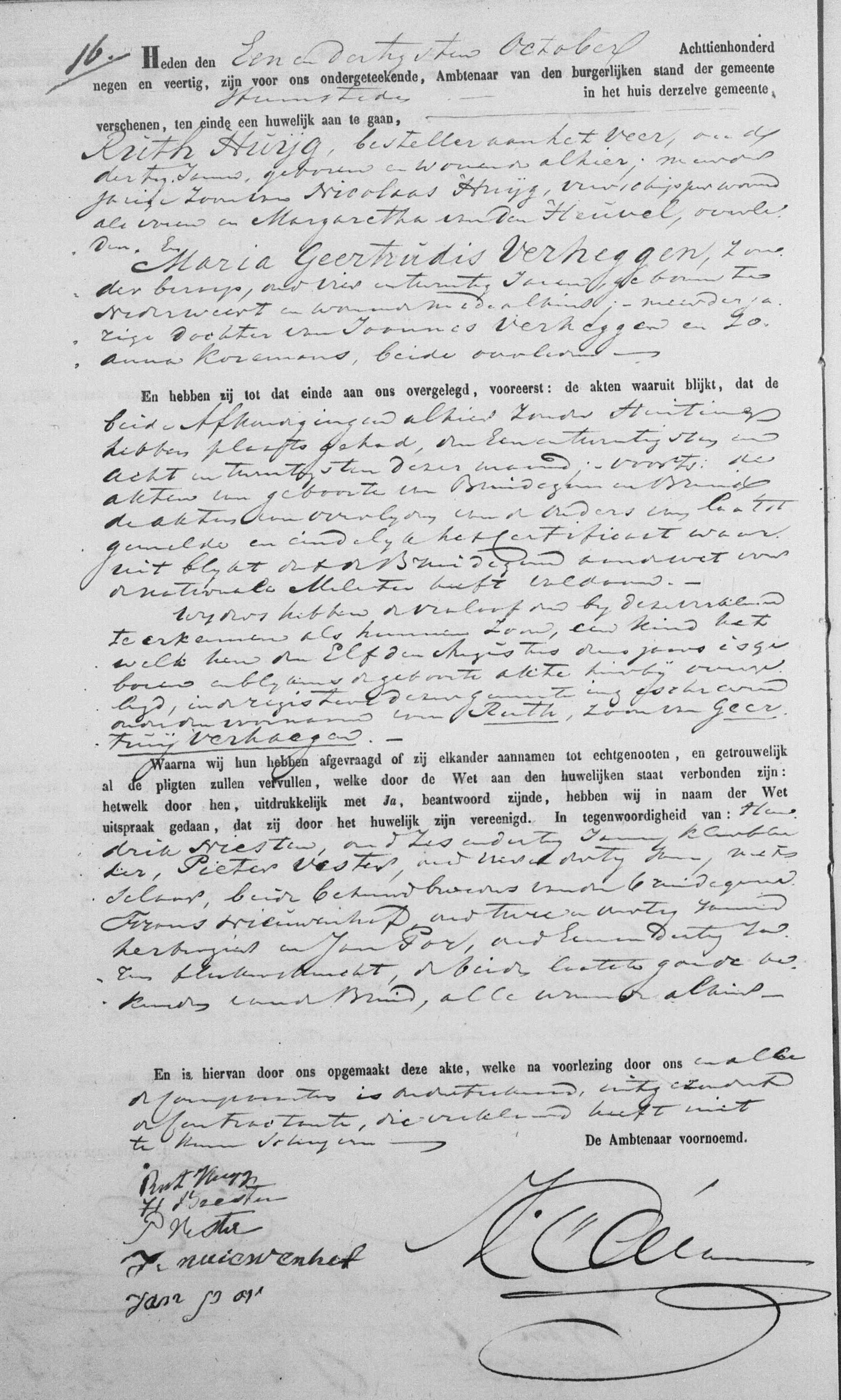 | Trouwt [Akte] met erkenning van een zoon geboren op 11-08-1849 genaamd Ruth op 31-10-1849 te Heemstede, NH, Nederland met: |