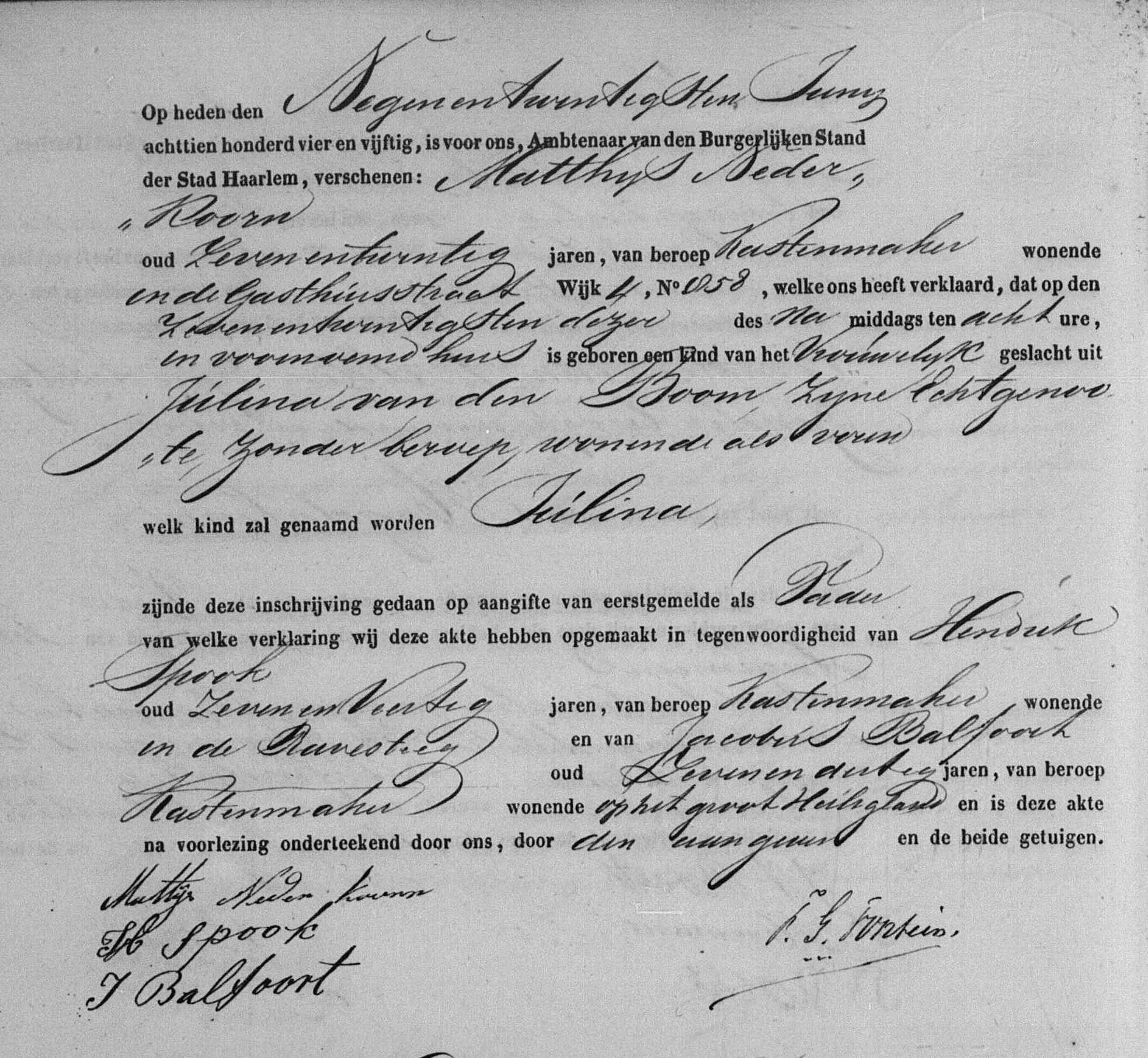 | 28 | 14 | Walterus Nederkoorn gedoopt r.k. op 14-04-1803 te Haarlem, NH, Nederland, van beroep schoenmaker, winkelier, overleden om 13:00 uur in het huis staande in de Spaanwouderstraat no. 307 18-10-1851 te Haarlem, NH, Nederland. |
