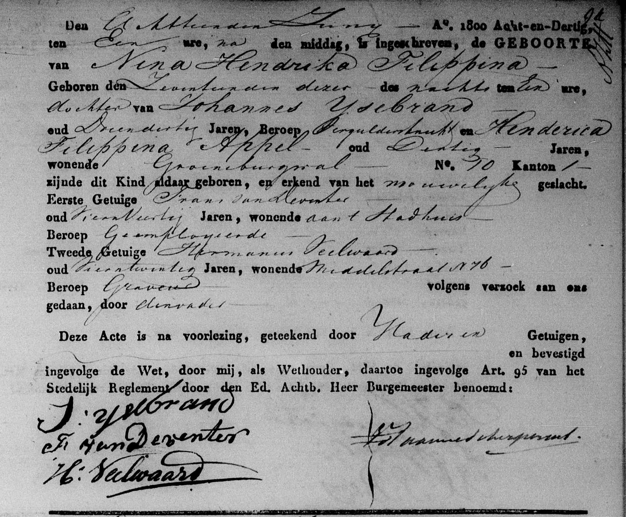 | 5 | 2 | Nina Hendrika Philippina IJsebrand geboren [Akte] in het huis Groenburgwal no. 10 om 01:00 uur op 17-06-1838 te Amsterdam, NH, Nederland, van beroep dienstbaar, overleden om 22:30 uur 09-06-1925 te Amsterdam, NH, Nederland. |